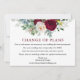 La Carte de Changement de Plans de Mariage Élégant Moderne à l'Aquarelle avec Fleurs de Bourgogne Marsala et Feuillage comprend des pivoines, des feuilles d'eucalyptus et d'autres feuillages magnifiques.