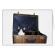 chat noir et blanc dans une vieille valise qui veut voyager ou se laisser emporter