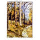 Une voie d'étroit enroule sa voie par une scène automnale de région boisée. De la couleur pour aquarelle originale par Christine le Hudson.