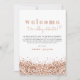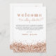 Cette lettre de bienvenue mariage et la chronologie présente des paillettes d'or rose en faux brillant et une mise en page de glam amusante. Modifiez facilement le libellé *most* de cette chronologie. Cliquez sur 'cliquer pour customiser plus loin' dans la section de personnalisation pour ouvrir l'éditeur complet. Pour ajouter de nouvelles icônes, visitez https://www.svgrepo.com/ et recherchez l'icône dont vous avez besoin. Téléchargez en tant que .svg, puis faites-le glisser et déposez-le dans l'éditeur Zazzle. Modifiez la couleur de l'icône située à droite de l'éditeur.