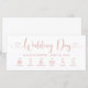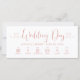Guidez votre cortège de mariage et vos invités à travers la célébration avec cette carte de chronologie romantique en or rose, dotée d'une écriture cursive en forme de cœur et de charmantes icônes d'événements. La typographie et les icônes chaleureuses en or rose sur un fond blanc épuré créent un look élégant et féminin avec un espace pour les noms et la date du couple. Personnalisez toutes les heures et étiquettes d'événements pour refléter votre journée.