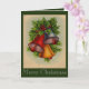 Cette carte de Noël comporte des cloches de Noël très vives et colorées avec du houx et des baies. Une pincée de neige fait de ceci une carte de vacances festive.