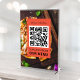 Il s'agit d'un panneau de table "scanner et commander notre menu" avec code qr business et texte en noir. Il sert à indiquer où les clients peuvent analyser et passer leurs commandes. Message clair et facile à repérer. Un grand panneau de commande pour les restaurants, les magasins et autres petites entreprises.