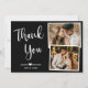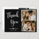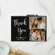 Élégant, minimaliste Hand Lettered Script noir et blanc Mariage Photo Collage Carte de remerciements. Modèle mariage moderne multi-photo carte de remerciements avec deux (2) photos sur le devant et une (1) photo sur le dos. Avec le texte "Merci" dans une jolie police de script de typographie manuscrite en blanc sur arrière - plan noir. Personnalisez le nom personnalisé et le message de remerciement. Si vous préférez écrire votre note à la main, supprimez simplement l'exemple de texte pour gagner de l'espace.