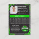 Ce modèle de carte de commerce de football noir et vert personnalisable est parfait pour présenter votre joueur ou votre équipe préférée. Avec de l'espace pour une photo, un nom, une position, des statistiques et des surbrillances, cette carte est sûre d'impressionner. Il est idéal pour les cadeaux, les souvenirs ou pour créer votre propre collection personnalisée.