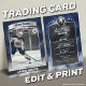 Score gros avec cette carte de trading personnalisée de hockey sur glace avec le design audacieux de stade bleu et argent! Parfait pour les jeunes athlètes, les équipes sportives ou les amateurs de hockey, ce modèle de carte de trading modifiable vous permet de customiser les statistiques des joueurs, le nom de l'équipe et la photo pour un look professionnel et collectif. Que ce soit pour des cadeaux de fin de saison, des cadeaux d'équipe ou des souvenirs personnels, cette carte est un must pour toute étoile montante.