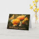 Carte de deuil avec fleurs orange pâle et papillon orange.