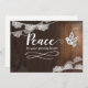 Exprimez vos condoléances à quelqu'un avec cette carte élégante, présentant le message "Paix pour vos cœurs endeuillés". Le design apparaît sur fond de bois avec une colombe artisanale et des accents de corde en dentelle sur les bordures supérieure et inférieure (qui peuvent être supprimés). L'intérieur peut être personnalisé mais comporte ce message, "Je pense à vous en ce moment de tristesse et vous envoie, ainsi qu'à votre famille, mes prières et mes sincères condoléances."