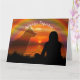 Une carte de condoléances chaleureuse et poignante pour un animal de compagnie perdu montrant la silhouette d'une femme regardant un beau coucher de soleil et l'image faible d'une présence canine fantomatique debout à proximité pour la réconforter. Un arc-en-ciel au-dessus représente le pont que les chiens traversent pour attendre le jour où ils retrouveront leurs propriétaires. Texte personnalisable sur le devant et laissé vierge à l'intérieur pour écrire votre propre message.