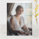Cette carte d'art captivante présente un portrait d'aquarelle serein d'une belle jeune femme blonde portant une robe blanche en soie. Assis par une fenêtre, elle tient un livre ouvert et tourne son regard engageant vers le spectateur. Le style aquarelle douce exprime magnifiquement la grâce tranquille et le charme littéraire de la scène. Cette carte est parfaite pour envoyer une note réfléchie, un message à un ami du livre, ou pour toute personne qui apprécie l'art qui capture des moments de connexion sereine.