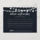 Cette carte de conseil mariage à cordes rustiques est parfaite pour un mariage moderne. Le design présente de belles lumières à cordes peintes à la main dans un arrière - plan bleu foncé. Ces cartes sont parfaites pour un mariage, une douche nuptiale, un baby shower, une fête de remise de diplômes et plus encore. Personnalisez les cartes avec les noms de la mariée et du marié, des parents à devenir ou du diplômé.