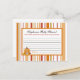 Ces adorables Cartes d'Avis Écrits Citrouille Automne automne automne sont un complément parfait à tout baby shower ou fête d'anniversaire. Il vous suffit de remettre ces cartes à vos invités, ainsi que des stylos Sharpie à pointe fine. Vos invités peuvent alors noter tous les conseils qu'ils ont pour la nouvelle maman d'être ou pour le garçon ou la fille d'anniversaire. Ils sont imprimés à une taille de 4,25 po x 5,6 po sur un stock de couverture de 120 lb ultra-lourd brillant (stock de carte). Nous avons une ligne entière consacrée à ce design ici à zazzle store sous l'onglet * Design Collections menu pour inclure des invitations (5x7), Étiquettes de retour, Étiquettes de messagerie, Envelope Seals, Timbres d'étape, Cup Cake Picks, Water Bottle Wrappers, Hershey's 1.55 oz. Grandes barrettes, Stickers miniatures Hershey's, Sac à Popcorn Micro-Ondes, Cartes de Place Écrits, Toppers à Sac, Cartes de Remerciement FLAT (4x5), Cartes de Remerciement FLADED (4x5), Balises de Faveur, Cartes de Menu, Cartes à Monnaie, Couvercles Lollipop, Signets, Cartes de Bingo, Cartes Marqueurs, Bingo Card Call Out Sheets, Writable Advice cards (4x5), etc.