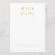 Cette simple carte de conseil mariage or élégant est parfaite pour votre mariage moderne minimaliste blanc et or. Le design comporte une police d'or contemporaine minimale accompagnée d'une calligraphie formelle. Gardez-le tel quel, ou choisissez de le personnaliser avec vos propres oeuvres d'art ou photos !