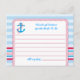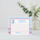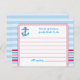 Carte de conseil nuptiale moderne et attrayante, idéale pour un événement à thème nautique. Doté d'une ancre, d'une bordure de corde et d'un arrière - plan à rayures. Touche sophistiquée pour ajouter à une douche nuptiale et donner des conseils et des souhaits bien à la future mariée. Idéal pour une fête d'été. Ajoutez votre propre libellé.