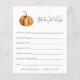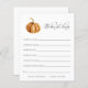 Demandez aux clients de la douche de remplir ces adorables souhaits pour les cartes bébé à votre baby shower. Doté d'un citrouille d'aquarelle. Personnalisez le avec le nom et la date de la douche de maman.