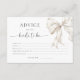 Cette carte d'enceinte "conseil pour la mariée" de douche nuptiale présente un design d'arc blanc simple parfait pour les douches nuptiales "elle attache le noeud".