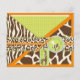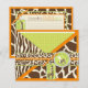 Empreintes sucrées safari avec sucette et girafe aux accents orange et vert.