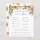 Carte de conseil et de prédictions baby showers avec des oranges d'aquarelle et de verdure. Une façon amusante d'interagir avec les invités pendant votre baby shower. Correspond à la collection Vintage de clémentine et de verdure dans la boutique Adore Paper Co Zazzle.