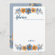 Ces cartes de conseils de mariage imprimées sur mesure sont parfaites pour les fêtes de douche de mariée. Elles ont des coins arrondis et présentent une illustration florale de style aquarelle dans des nuances plus douces et atténuées de bleu et d'orange, ce qui les rend parfaites pour les mariages et les événements spéciaux d'automne. Le dos de ces cartes est d'un bleu clair avec un motif floral assorti. Utilisez les champs de modèle pour personnaliser facilement ces cartes de conseils ou de sagesse avec vos informations. Avez-vous plus d'informations que vous devez inclure ? Sélectionnez l'option PERSONNALISER pour ajouter du texte supplémentaire à ces cartes.