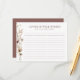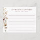 Apportez une touche de beauté florale et de charme rustique à votre fête de mariage avec ces élégantes Cartes de conseils de mariage aux fleurs sauvages aquarelles. Avec un motif enchanteur de fleurs sauvages aquarelles, ces cartes permettent à vos invités d'écrire des conseils de mariage réfléchis, des prédictions et des conseils précieux pour la future mariée. Le design floral apporte une touche d'élégance et de beauté naturelle à cette activité chaleureuse de fête de mariage. Donnez à vos invités un endroit pour écrire leurs mots de sagesse, leurs vœux de bonheur et leurs prévisions spirituelles pour l'avenir.