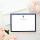 Nos cartes à plat personnalisées et chic comprennent une bordure bleu marine, une illustration d'ananas tropical vert et rose, et votre nom, monogramme ou choix de personnalisation. Les cartes retournent à de larges bandes bleu marine et blanc pour un look chic et preppy.