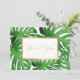 Un élégant motif tropical de feuilles de monstère aquarelle devient un motif accrocheur sur cette carte de note de remerciement chic. Le cadre en faux or ajoute un accent de luxe. Le côté arrière comporte un petit élément de conception feuille de monstère sur le dessus, laissant le reste de la carte vide pour un grand espace d'écriture. Parfait pour remercier les mariages, l'utilisation d'affaires pour remercier les clients et les clients, ou pour la correspondance personnelle. Art et design © 1201AM Design Studio