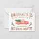 Notre panneau publicitaire "Arbre de Noël" préféré que nous avons conçu jusqu'à présent. Il contient deux superbes polices complémentaires, des éléments de clip art aquarelle, l'emblématique camionnette rouge vintage, de style ancien, des lumières d'arbre à grosses ampoules et quelques branches pour encadrer le bas. Il est écrit : "Arbres de Noël, coupés frais quotidiennement, propriété familiale depuis 1972, livraison locale gratuite". Par Monkey Business Graphic Design, juillet 2020.