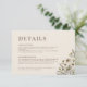 Carte De Correspondance Boho Beige Botanique Détails du Mariage
