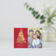 Cette carte de vacances de Noël à petit prix dispose de 2 de vos photos préférées et d'une image texte "Joy Peace Holly & Jolly Merry & Bright" en feuille d'or. Sur le dos, des flocons d'or encadrent la 2ème photo sur un arrière - plan rouge. Facile à personnaliser.