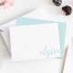 Nos cartes à plat personnalisées chic comprennent votre nom dans l'élégant script de calligraphie aqua vert pâle en lettres en bas à droite. Les cartes retournent à un délicat motif de treillis.