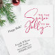 Diffusez la joie des fêtes avec cette carte de vœux en calligraphie moderne présentant la phrase festive « C'est la saison d'être joyeux » en rouge gras. Parfaite pour les agents immobiliers, les propriétaires de petites entreprises et les professionnels qui souhaitent envoyer des vœux de Noël mémorables à leurs clients et collègues. Le verso comprend un espace pour votre nom d'entreprise, votre logo, votre site web ou vos coordonnées afin que vous puissiez garder votre marque à l'esprit. Personnalisez facilement pour un effet professionnel et soigné. Idéal pour les notes de remerciement aux clients, les envois de vœux de Noël professionnels et les salutations attentionnées de fin d'année.