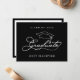 Cartes de remerciement noires, plates et recto-verso avec votre nom, année de promotion, un chapeau de diplômé et le mot Diplômé en lettrage blanc chic sur le devant. Il y a suffisamment d'espace au dos pour écrire un message manuscrit ou composer un message à imprimer. ARTICLES assortis et plus de couleurs dans notre collection.
