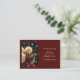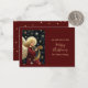 This elegant and enchanting Christmas Holiday Card features a beautiful, vintage-style illustration of a Golden-Haired Christmas Angel playing a magnificent Harp. The Angel is set against a dramatic, dark Starry Night sky, adorned with shimmering gold stars and a celestial glow. The Angel wears a rich, deep red gown, complementing the card's luxurious Burgundy Red background.