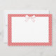 Set the tone for a chic Italian-inspired baby shower with this charming Ciao Baby! themed note cards. Featuring a classic red gingham border, delicate ribbon bow illustration, and elegant script typography, this design channels effortless European café style with a playful twist.