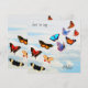 Ciel bleu avec des nuages blancs et un vol de papillons colorés à l'avant et à l'arrière de cette carte. Une façon belle et attentionnée de faire savoir à quelqu'un que vous pensez à eux.