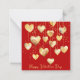 Personnalisez ces mignons cœurs en or de la Saint-Valentin en forme de cœur suspendus à une ficelle sur une carte pour les festivités de la Saint-Valentin à l'école. Ajoutez votre message spécial sur le recto et le verso de ces cartes de Saint-Valentin pour l'école. Les cœurs en or semblent être suspendus au haut de la carte de vœux par une ficelle dorée. Certains cœurs en or ont un délicat tourbillon rouge pour plus d'élégance. Le fond est d'un rouge Cornell vif et audacieux. Profitez-en ! Conçu par mw1deisgnsart.