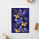 Composition des luxueux papillons saphir et bijoux en or sur arrière - plan bleu texturé.