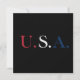Carte de voeux imprimée avec les U.S.A. Red White and Blue Lettering Illustration de design par TheFabricSeal imprimé sur demande shop à l'adresse Zazzle.com #ZazzleMade https://www.zazzle.com/store/thefabricseal Tous les drapeaux des pays du monde entier sont si beaux, y compris le drapeau inspiré pour ce design des Etats-Unis d'Amérique et de l'équipe U.S.A. avec un beau rouge, blanc et bleu sur une audacieuse couleur noir arrière - plan ébène. Notre boutique présente également les collections de produits de la marque américaine Stars and Stripes avec une couleur arrière - plan noire et blanche. Regarde-les.