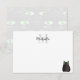 A cartoon style black cat. Custom note cards with monogram. Edit initial and name to customize.