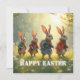 A delightful Easter scene featuring four adorable bunnies walking through a sunny spring meadow. Dressed in charming outfits, they bring warmth, joy and a playful atmosphere perfect for celebrating Easter and the beauty of the season.