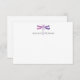 Une jolie carte de note personnalisée avec une illustration aquarelle violette d'une libellule et votre nom en police serif gris foncé de chaque côté. Cela fait un excellent cadeau pour toute femme amatrice de papeterie dans votre vie.