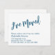 Dans cette conception simple, l'en-tête - "I've Moved" - a été rendu dans une police de caractères manuscrite moderne. La même police a été utilisée pour "Restez en contact ! au dos. D'autres détails apparaissent dans une jolie police traditionnelle sans-serif. Tout le texte, les couleurs, les polices et la mise en page peuvent être changés comme vous le souhaitez.