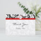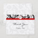 Élégant Monogramme Rouge Trim noir et blanc Damask Motif Mariage Tahnk You Cartes