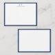 Create your own personalized note cards with monogram initials in elegant typography alongside custom name and simple border design in navy blue color.