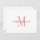 A red script name monogram in a modern sans script type, contrasted with serif initial and first name. A modern minimalist style stationery notecard. Order in larger quantities for greater savings. Rose pink.