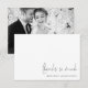 Carte De Correspondance Élégant Script noir blanc Photo Mariage Thankyou