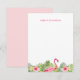 Une carte de notes verticale plate personnalisée comporte un prénom personnalisé en texte rose moderne, accentué d'un joli flamant rose et d'une bordure de feuilles de palmier tropicales vertes luxuriantes et de fleurs d'hibiscus rose. Un design de papeterie aéré, coloré et féminin pour l'été.