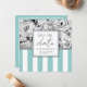Save the Date notecard - minimalist black-and-white elegance with pastel detail. Modern monochrome floral with soft luxe accents A blend of classic floral romance (the watercolor flowers) and contemporary minimalism (structured layout and stripes).