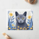 Carte De Correspondance Fleurs Jaunes Chat Bleu Russe