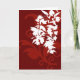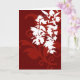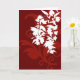 Motif floral rouge et blanc sur une carte rouge foncé.